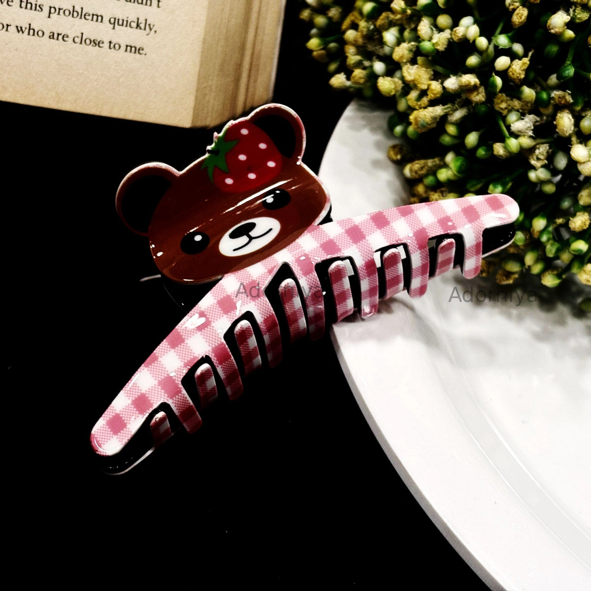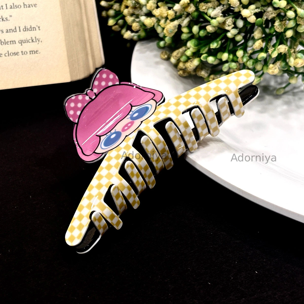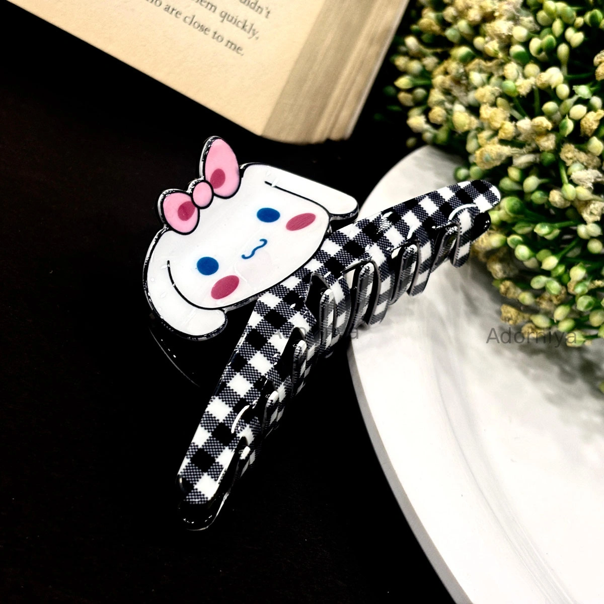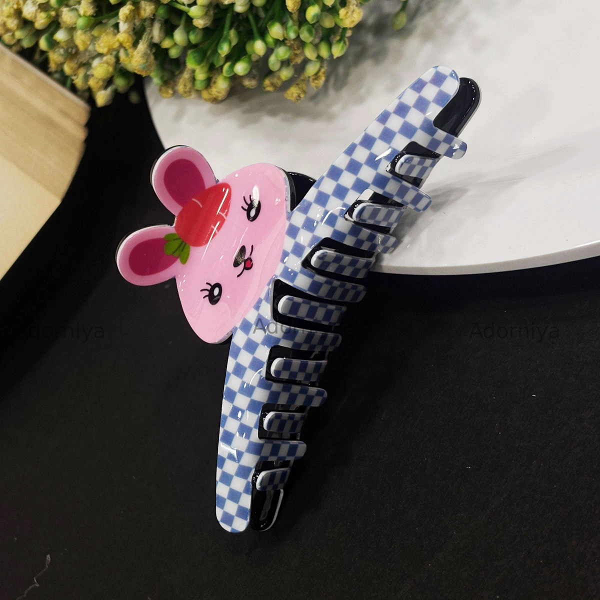 🐰 Cute Cartoon Animal Hair Claw Clips for Girls | Gingham Check Design | Multicolor Plastic Hair Clips for Kids & Teens