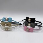 Sparkly headbands, each featuring a bow with a decorative pearl and rhinestone center.