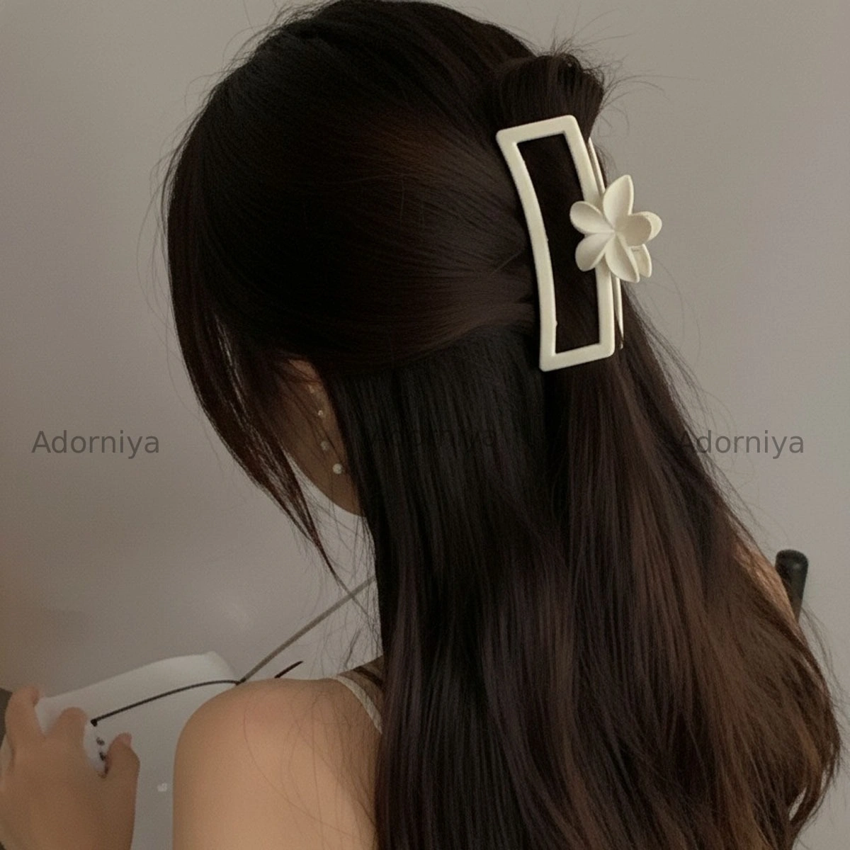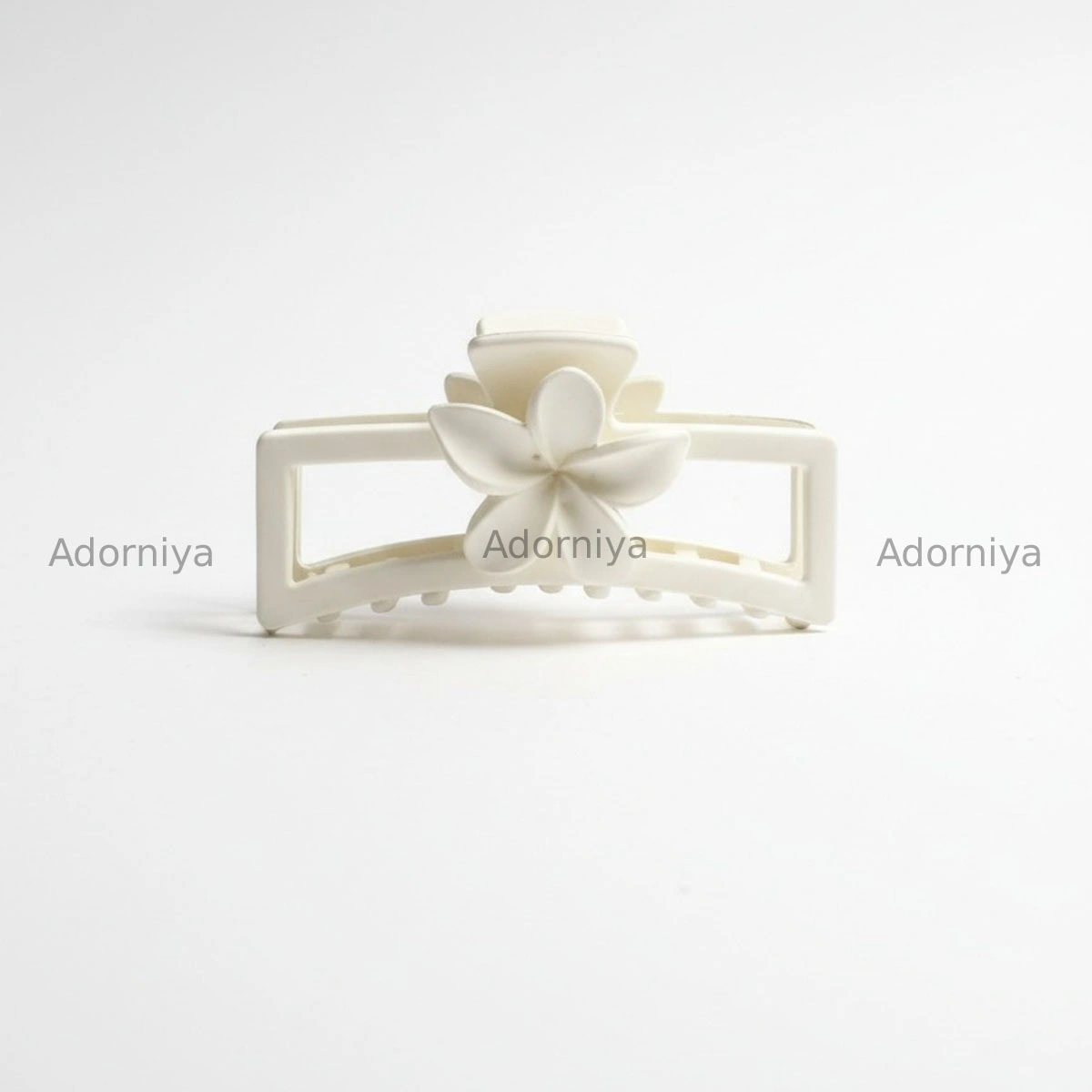 🔹 Design Large hollow rectangular frame featuring a centered 3D five-petal flower. Smooth, rounded edges for scalp comfort.