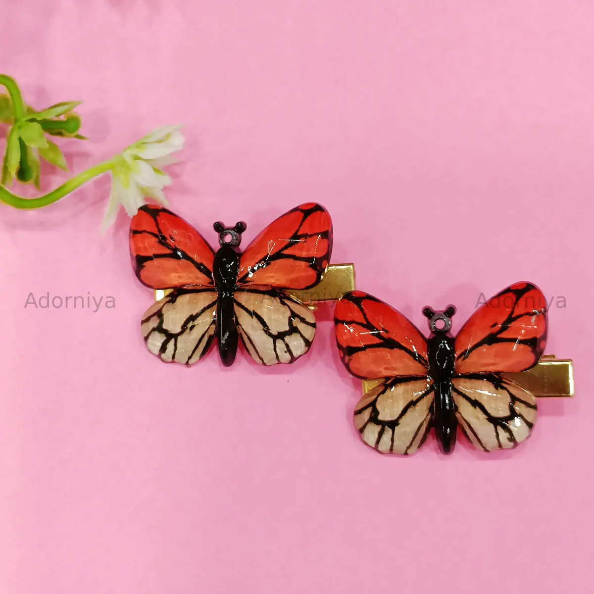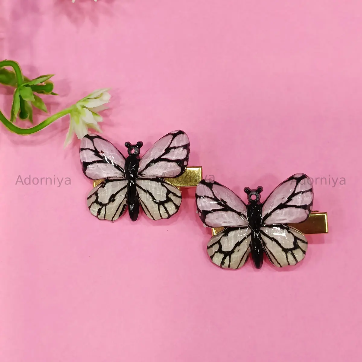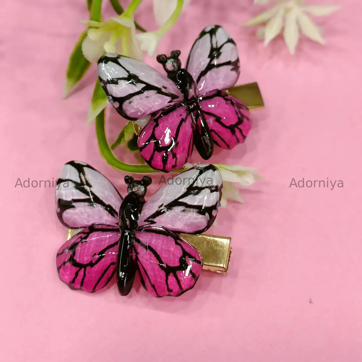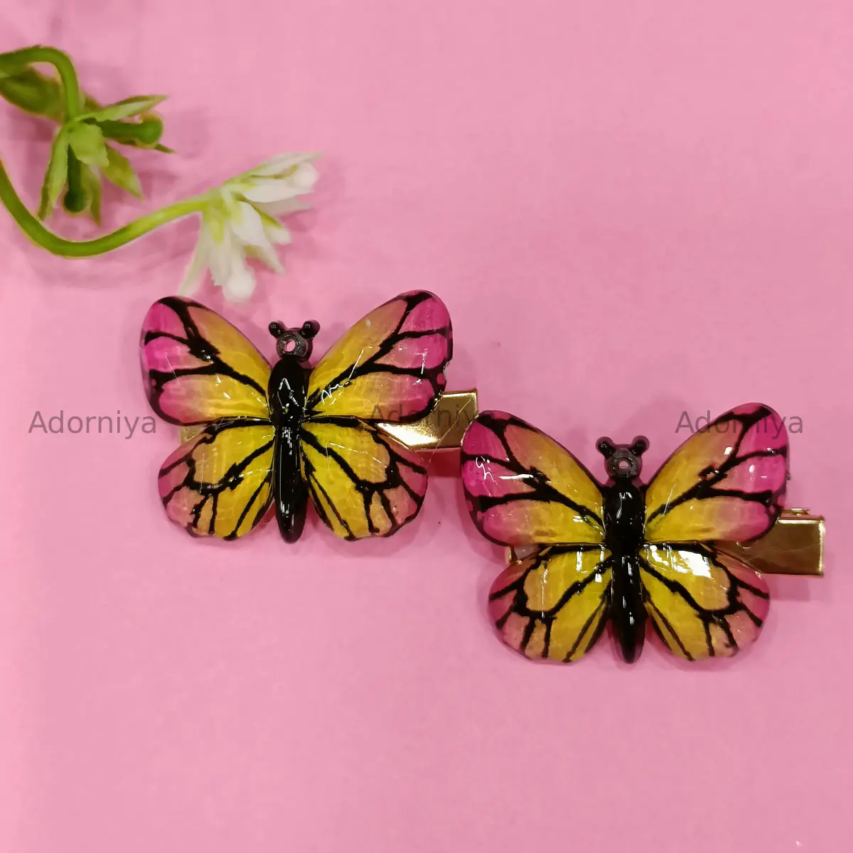 Shop glossy butterfly hair clips (set of 1 pair) – made with resin wings & sturdy metal clips. Perfect hair accessories for women & girls.
