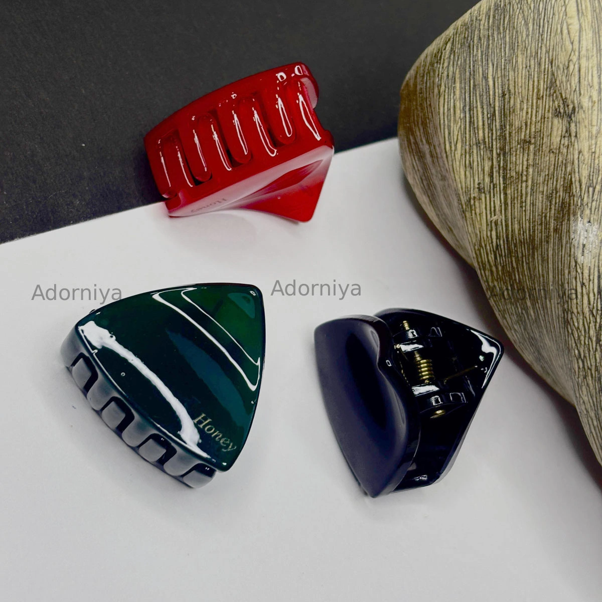 Bring color and shine to your hairstyles with our Glossy Triangle Hair Claw Clip Set from the “Honey” Collection!