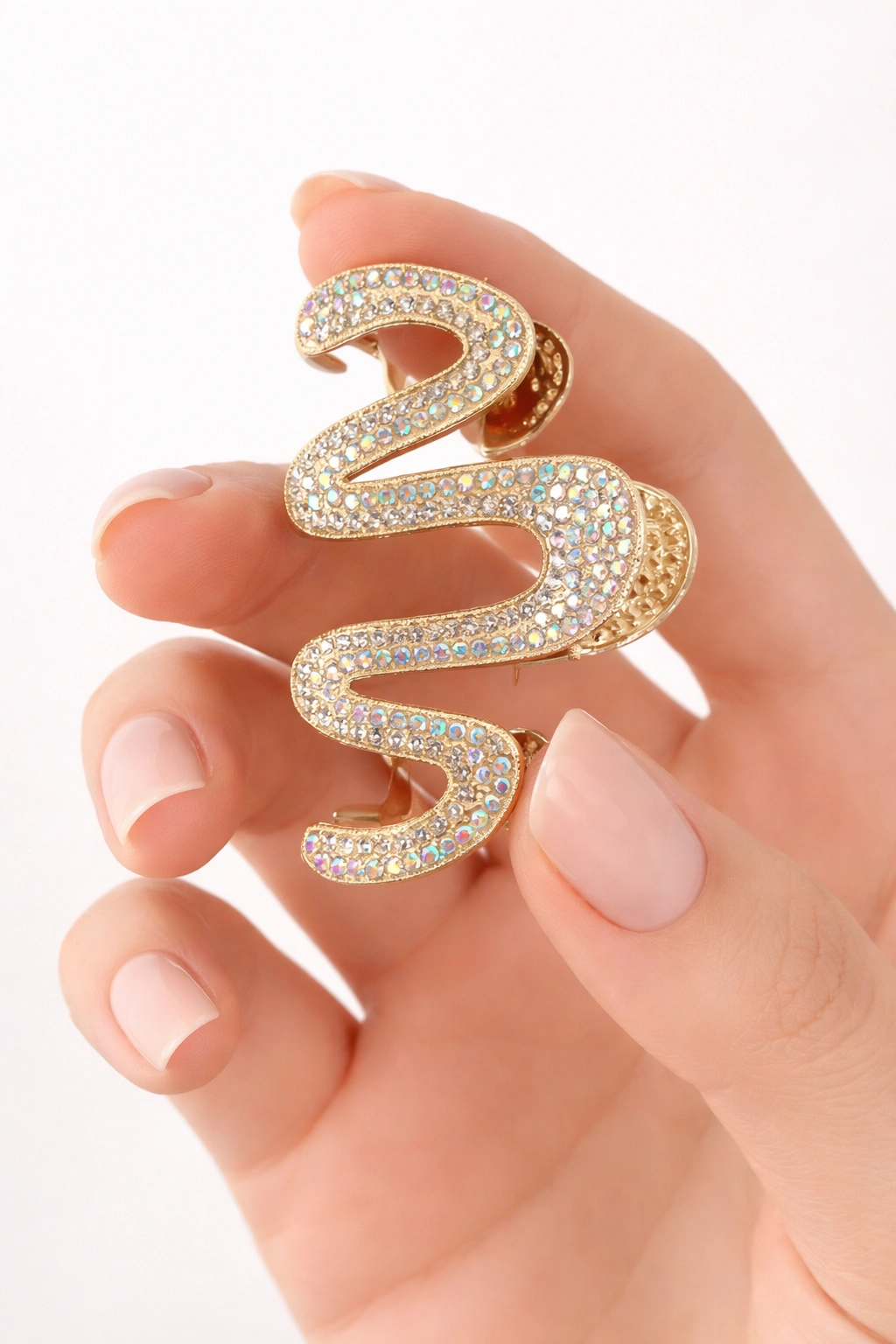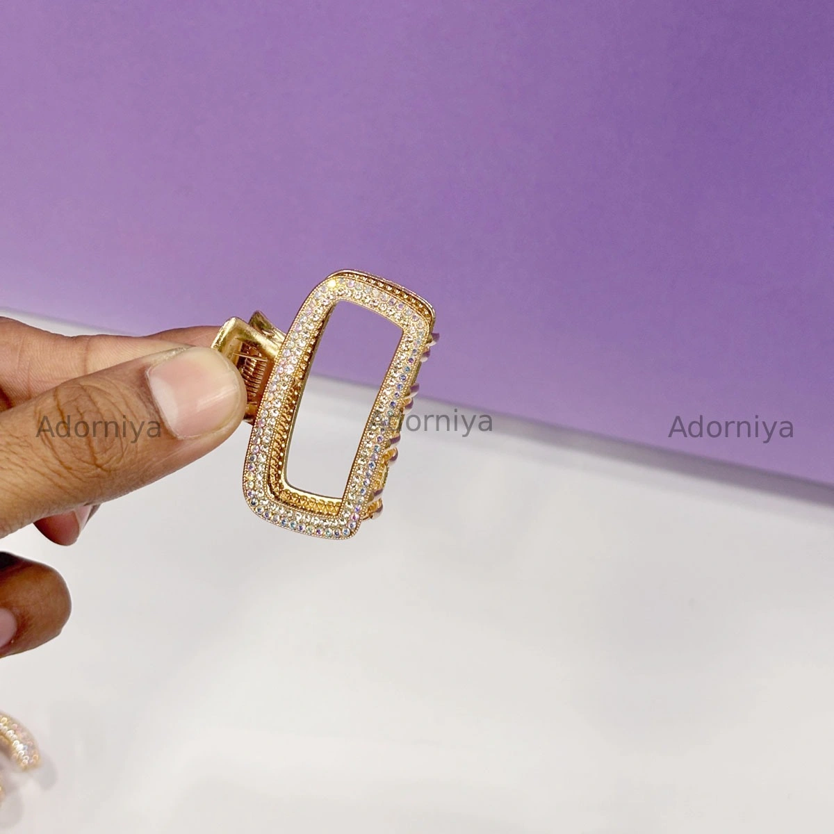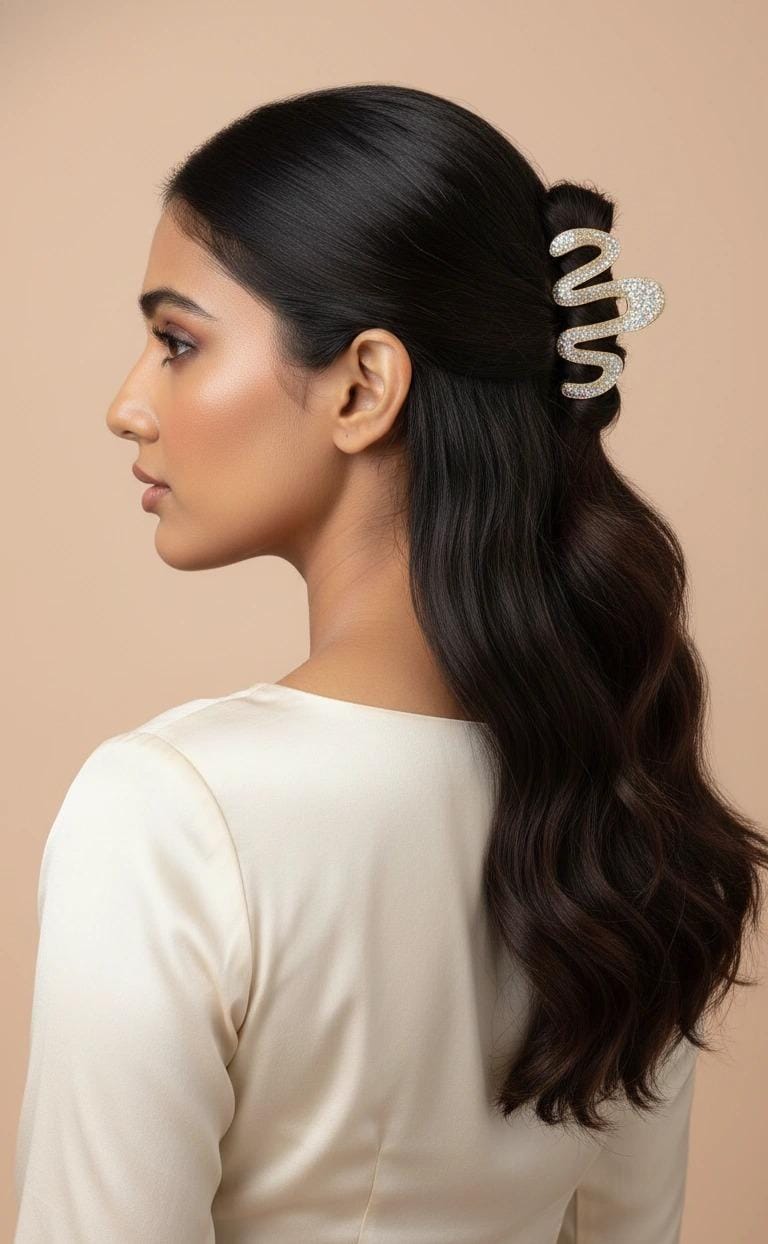 The crystal-studded finish reflects light beautifully, making it ideal for daily wear, parties, office looks, and special occasions. The strong claw mechanism ensures a firm grip without pulling or discomfort.