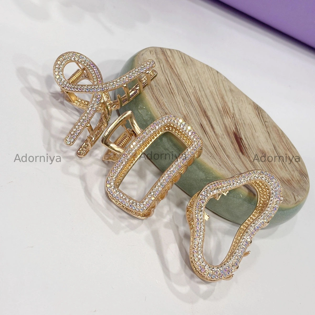 🔹 Design : Geometric & abstract claw clip designs, gold-tone finish, pavé crystal detailing, modern luxury style.