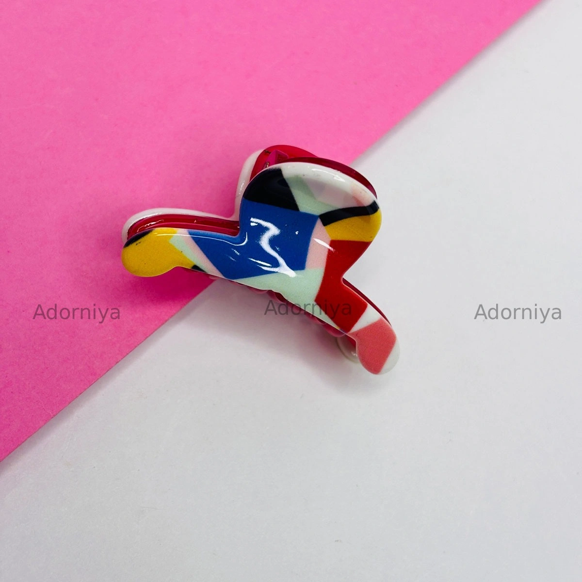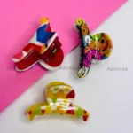Upgrade your hairstyle with these vibrant patterned acrylic claws. Each piece features a unique multicolor print that adds a pop of personality to any look. Lightweight, durable, and perfect for quick updos, half-ties, or styling on the go. Ideal for all hair types.