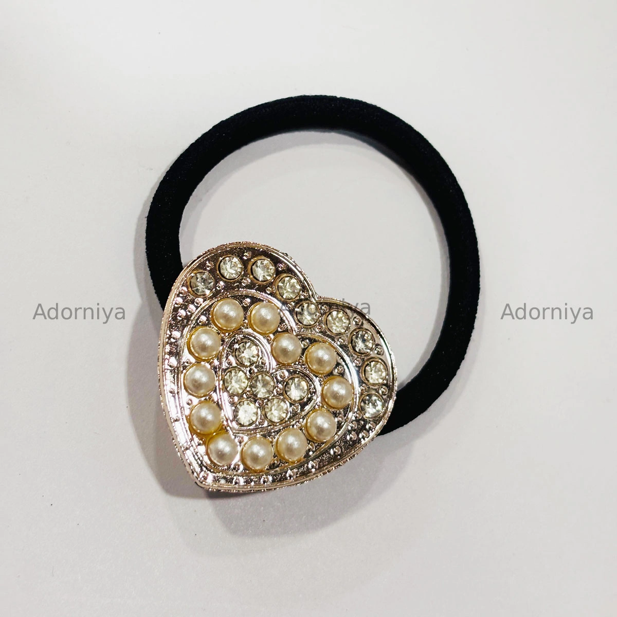 Pearl & Rhinestone Hair Ties for Women – Fancy Elastic Rubber Bands with Stylish Shapes (Heart, Flower, Triangle, Square)