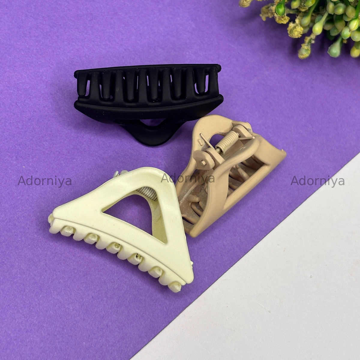 Add a touch of modern elegance to your hairstyle with the Adorniya Minimalist Triangle Hair Claw Clip. This stylish hair accessory features a unique triangular design and a chic matte finish, making it perfect for everyday wear or special occasions. Made from durable, high-quality plastic, this clip provides a strong hold, keeping your hair in place throughout the day. Whether you’re creating a casual updo or adding flair to a simple ponytail, this hair clip is a must-have for any fashion-forward woman or girl. Its versatile design makes it a great addition to any hair accessory collection and an ideal gift option.